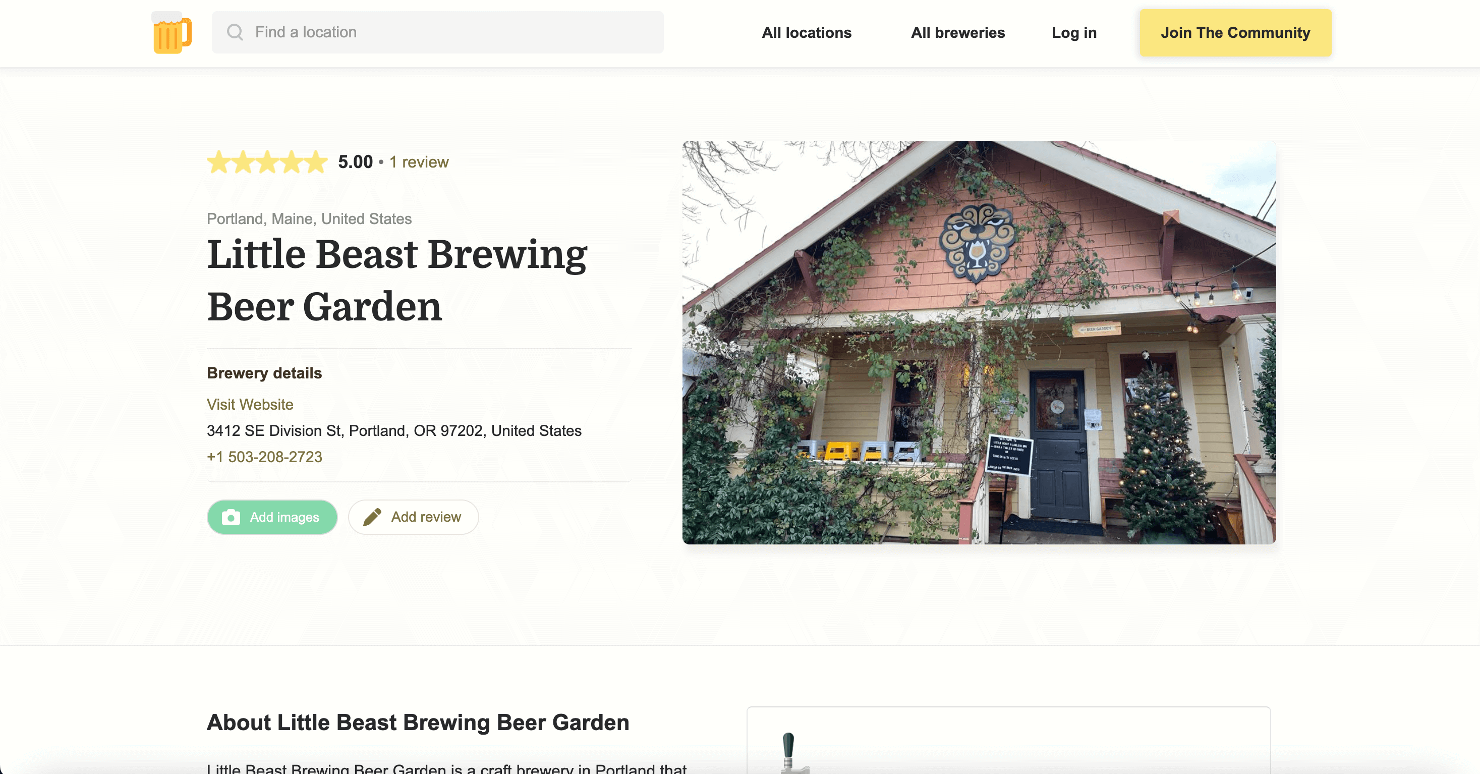 The vision for this site was beyond just being a Yellow Pages style directory for craft beer breweries. I wanted to create a reviews-based community where beer lovers could connect and bond over the experiences at breweries, ensuring they actually engage and come back to our site.